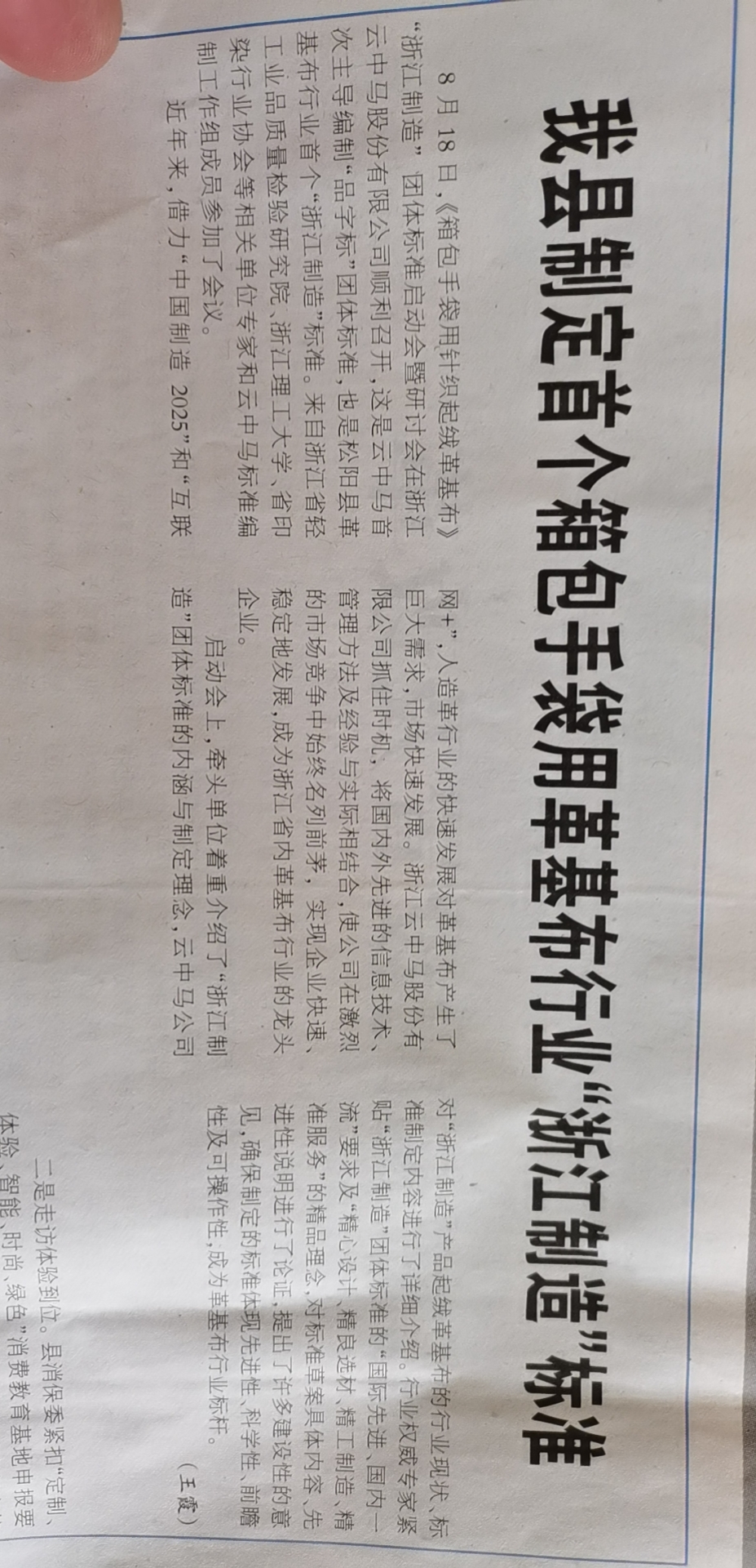 2021年8月18日上午,由浙江省輕工業品質量檢驗研究院牽頭組織、浙江云中馬股份有限公司負責起草的《箱包手袋用針織起絨革基布》“浙江制造”標準啟動暨研討會在浙江云中馬股份有限公司召開。